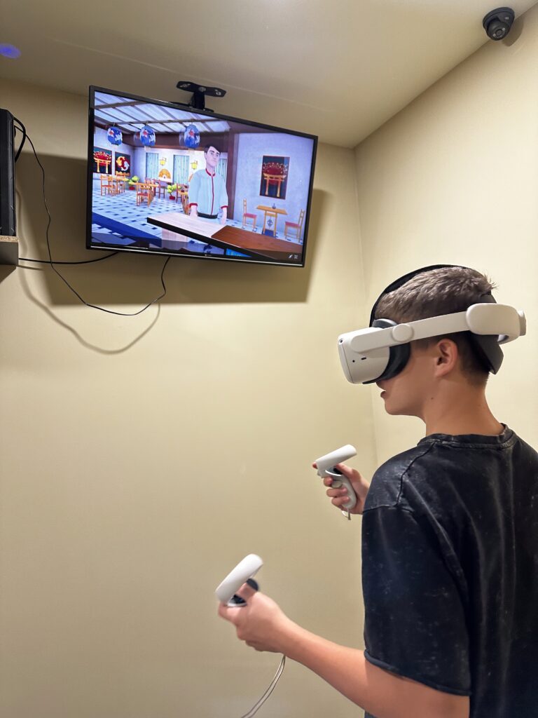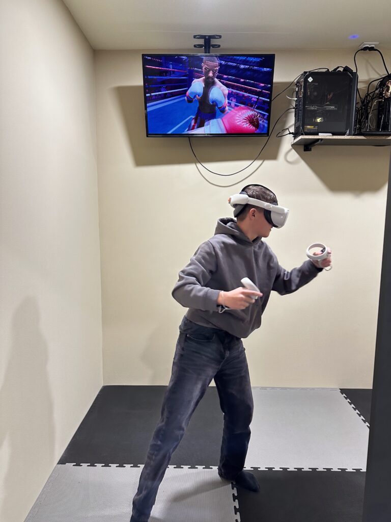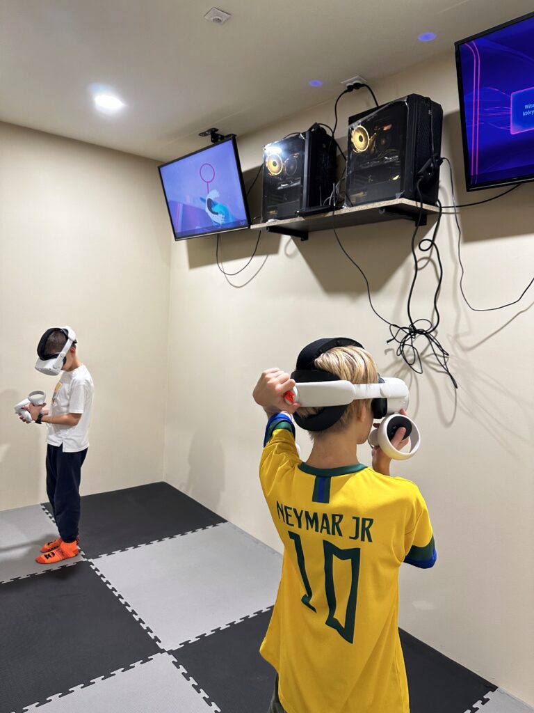 VR (Virtual Reality) to technologia, która pozwala użytkownikom wskoczyć do innego wymiaru rozrywki. W naszym pokoju VR znajdują się dwa profesjonalne stanowiska, na których korzystamy z gogli Meta Quest 2. Gwarantują najwyższą jakość obrazu i dźwięku, dzięki czemu poczujesz się jakbyś był w samym centrum akcji! Dla maksimum satysfakcji z rozrywki ich działanie wspierane jest nowoczesnymi komputerami gamingowymi.